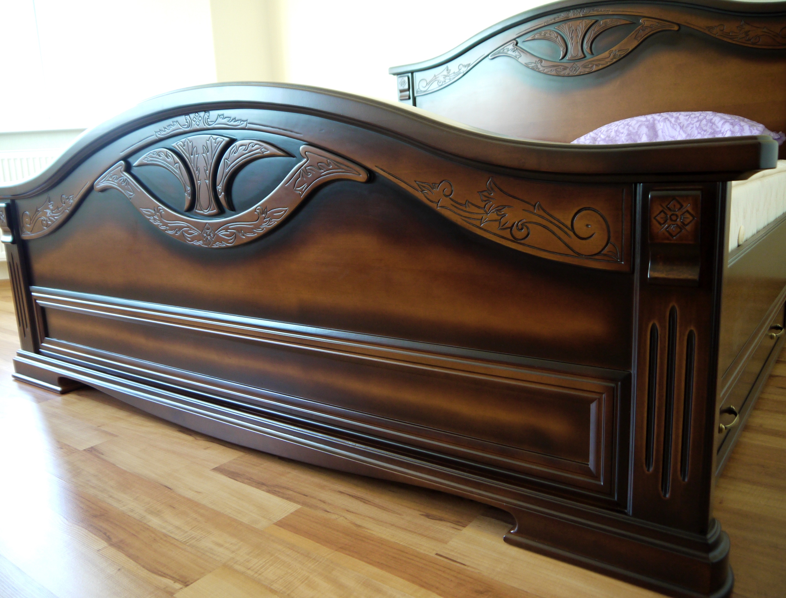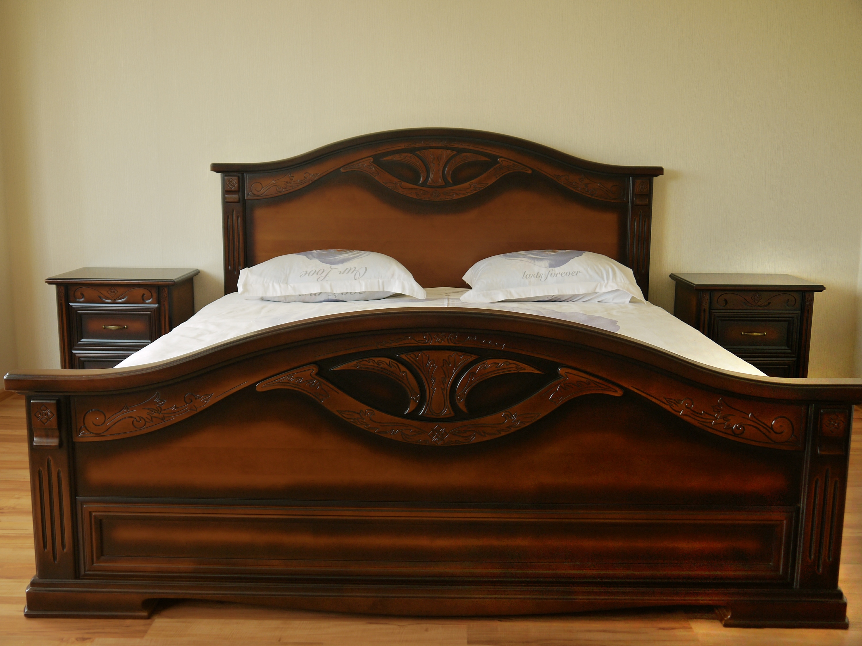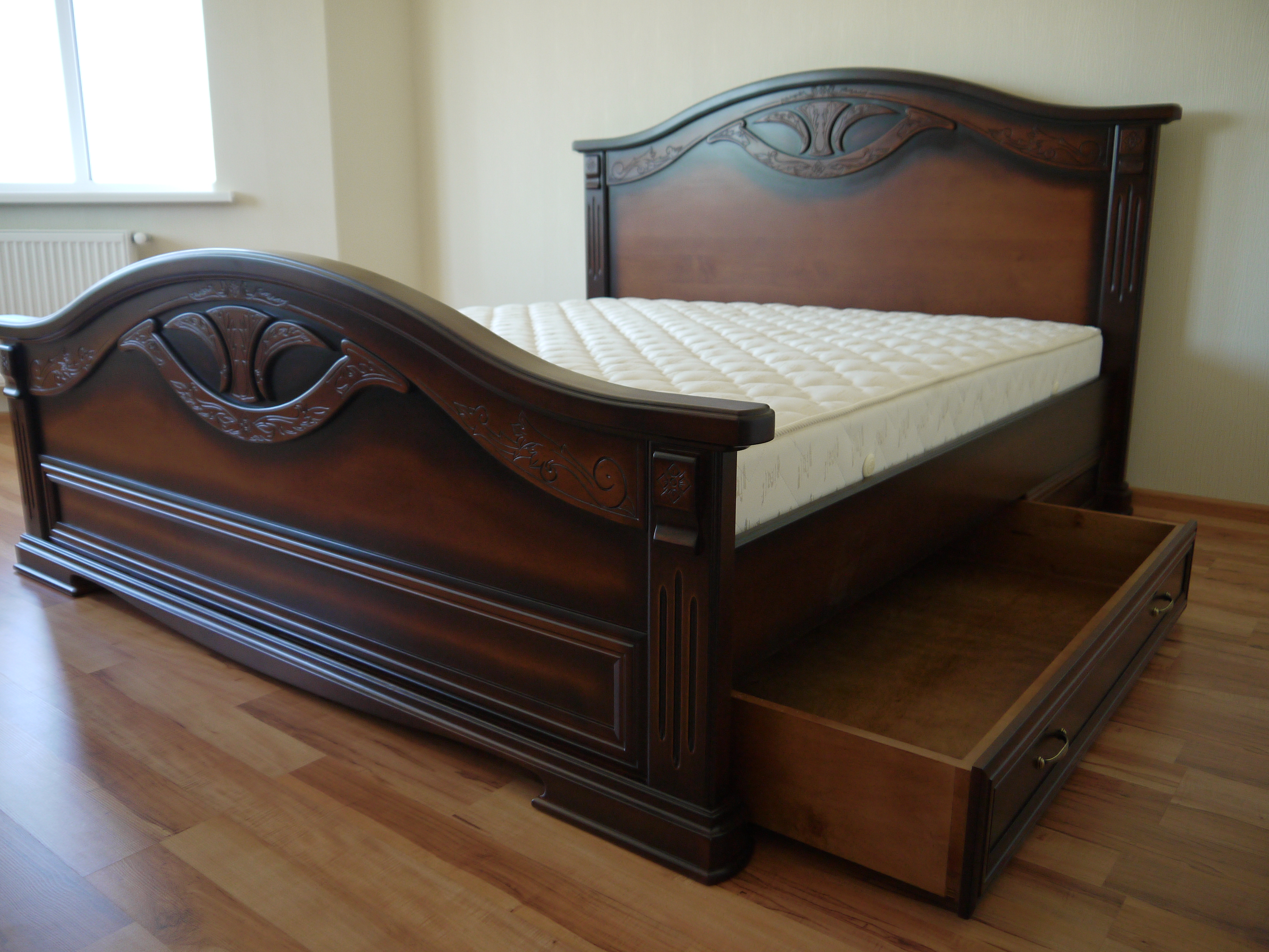 Виготовлення ліжка з натурального дерева проходить у нас весь процес, від розпилювання деревини до фарбування та пакування готового виробу. Для лакування ліжок використовують високоякісний лак різних відтінків. Для надання ще більшої ексклюзивності, застосовується ручне різьблення по дереву. Також дерев'яні ліжка можуть комплектуватись тумбочками. Детальніша інформація за тел: +380 (96) 348-01-52